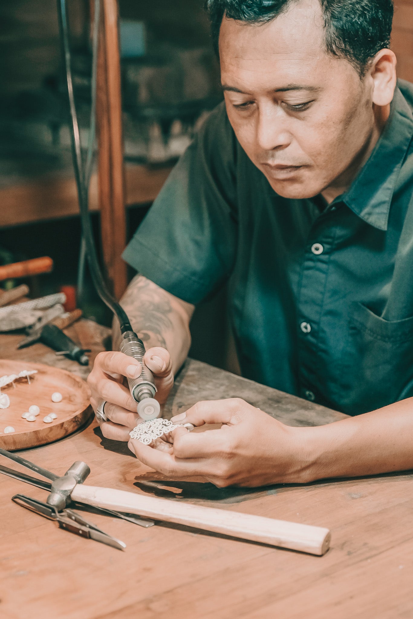 this collection was designed in canada & handmade by master artisans in celuk village, indonesia — a balinese village known for its gold & silver craftsmanship for over a century. our artisans use traditional techniques which are now being replaced by 3d printing & casting.